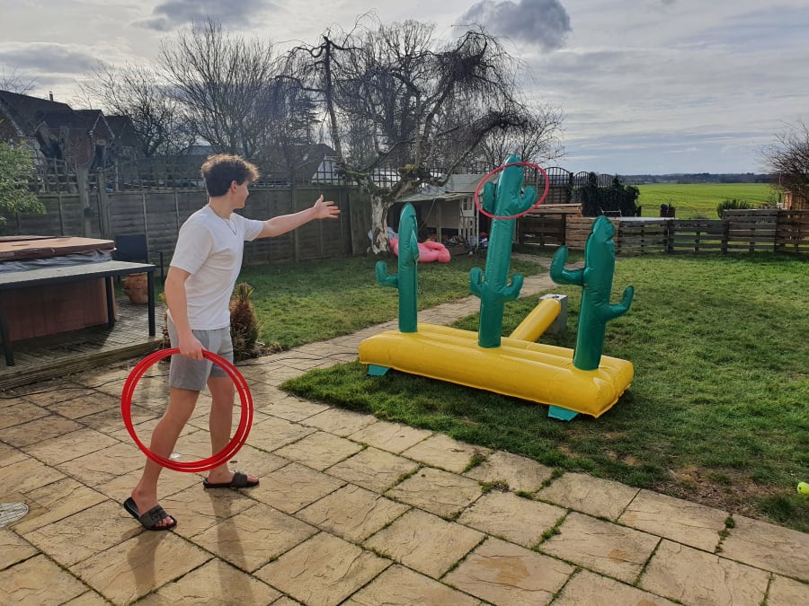 Inflatable hoopla comes with wooden rings - perfect for school and village fetes or fun at your party or wedding.