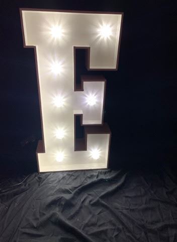 4ft 'E' Light up letter, handcrafted in white wood with white led bulbs. Great additional venue décor for your wedding or event. This letter is a great for initials or names.