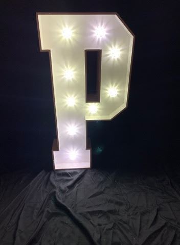 4ft 'P' Light up letter, handcrafted in white wood with white led bulbs. Great additional venue décor for your wedding or event. This letter is a great for initials or names.