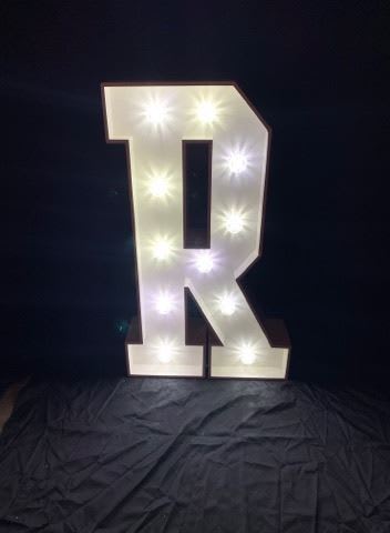 4ft 'R' Light up letter, handcrafted in white wood with white led bulbs. Great additional venue décor for your wedding or event. This letter is a great for initials or names.