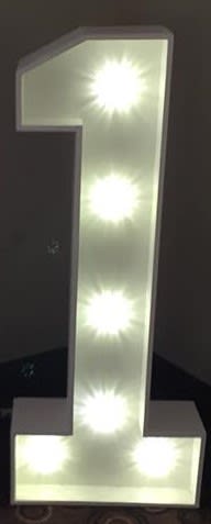 4ft '1' Light up number, handcrafted in white wood with white led bulbs. Great additional venue décor for your wedding or event. This letter is a great for initials or names.