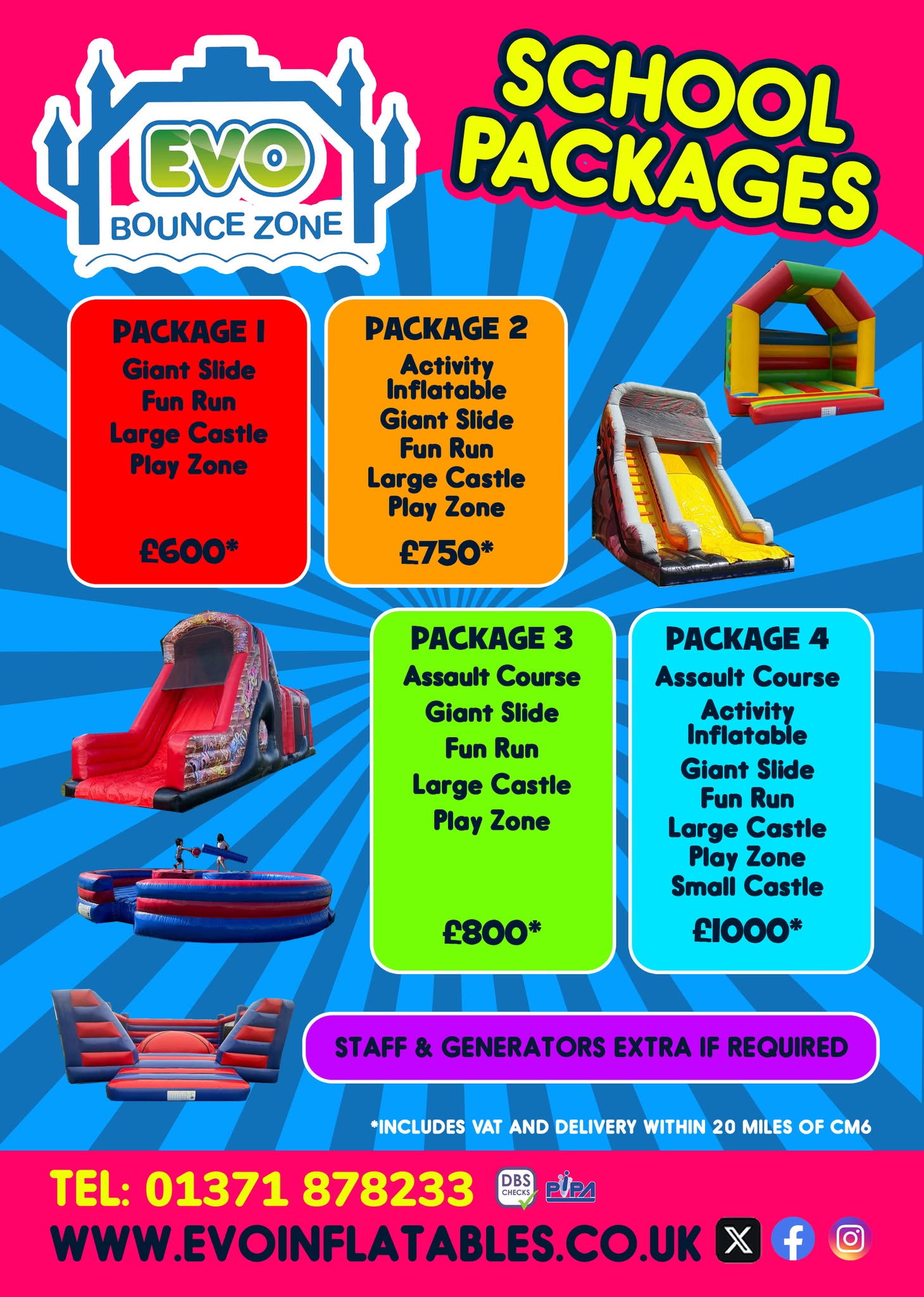 Give us a call to discuss your school packages on 01371 878233.
