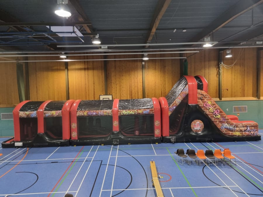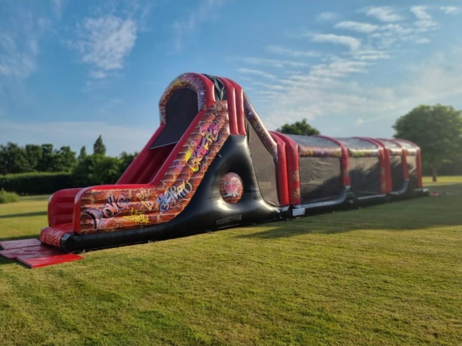 Inflatable obstacle courses are extremely popular for wedding parties, leavers parties, corporate events and a range of other functions. Our Mega Assault Course has a numerous array of obstacles within the inflatable such as tunnels, barrels, criss cross, dangly balls and bish bash.